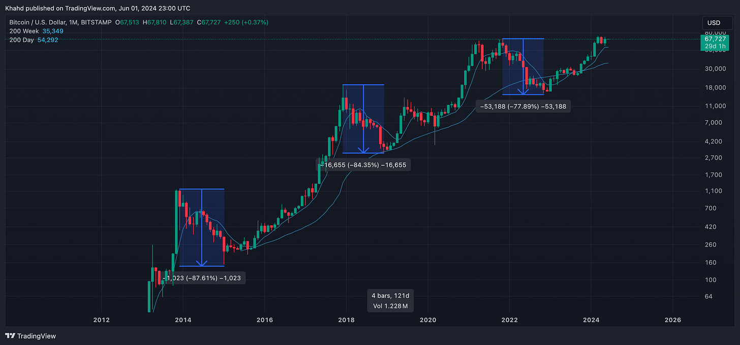 It is worth noting that Bitcoin has not existed for long compared to other conventional stores of value, and has therefore not yet proven to be a long-term store of value. Even so, to put into perspective how large of a leap it’s already done, we can measure its performance against all other assets. A rough estimate of total assets in the world in 2024 is 400 trillion USD. Bitcoin has gone from its inception, zero, to a market cap valuation of around 1.4 trillion in 2024. That is 0.35% of global wealth! To reach such a high monetary value that fast is unprecedented. Notably, the value of this asset has risen exclusively through the market process. There has been no enforcement nor incentive from any government. Purely through individual people and businesses, have Bitcoin reached its monetary value.